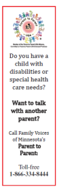 Help us get information out to families about the Family Voices of Minnesota Parent Network and Parent to Parent Program.